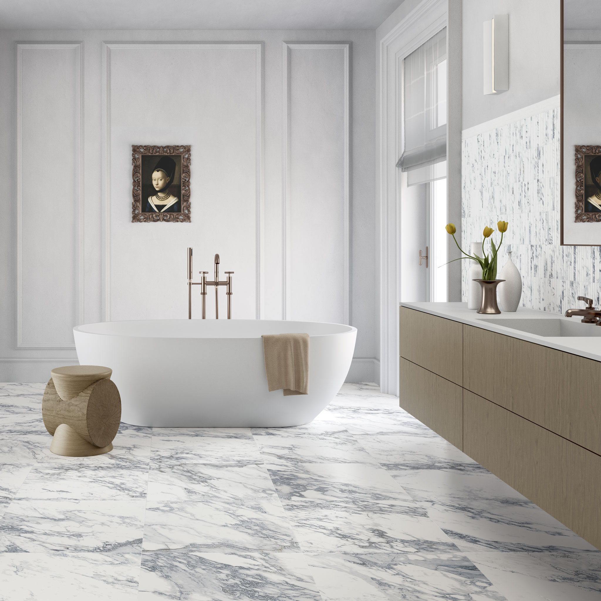 Delicate Mist 3D draws inspiration from three luxurious marble varieties. Its detailed veining and natural surface movement create an authentic, organic look, making it suitable for both classic and contemporary spaces.
