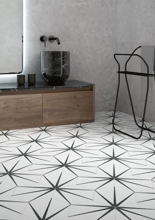 Both floor and wall coating, the tiles compose a contemporary signed surface inspired by modern architecture cements: settings acquire harmony and shape, where materials play the leading role.