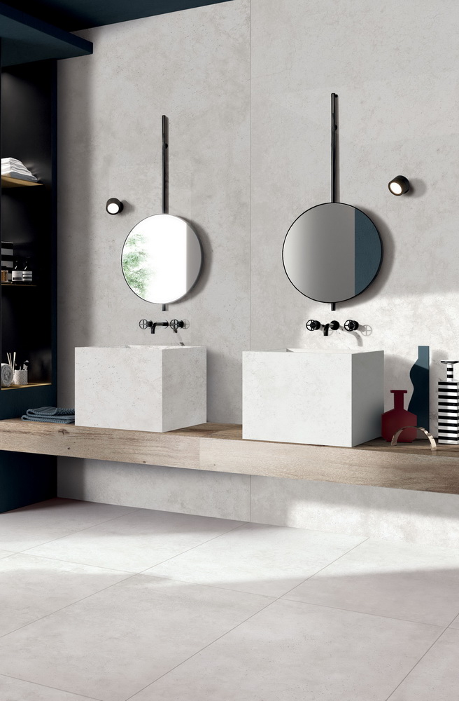 Inspired by the concrete blocks used in industrial building, Iperativo exposes the signs of ageing within the material. Hairline cracks and imperfections are accurately reproduced on the surface using the latest digital technology in keeping with a contemporary aesthetic, based on a creative fusion of styles and materials.