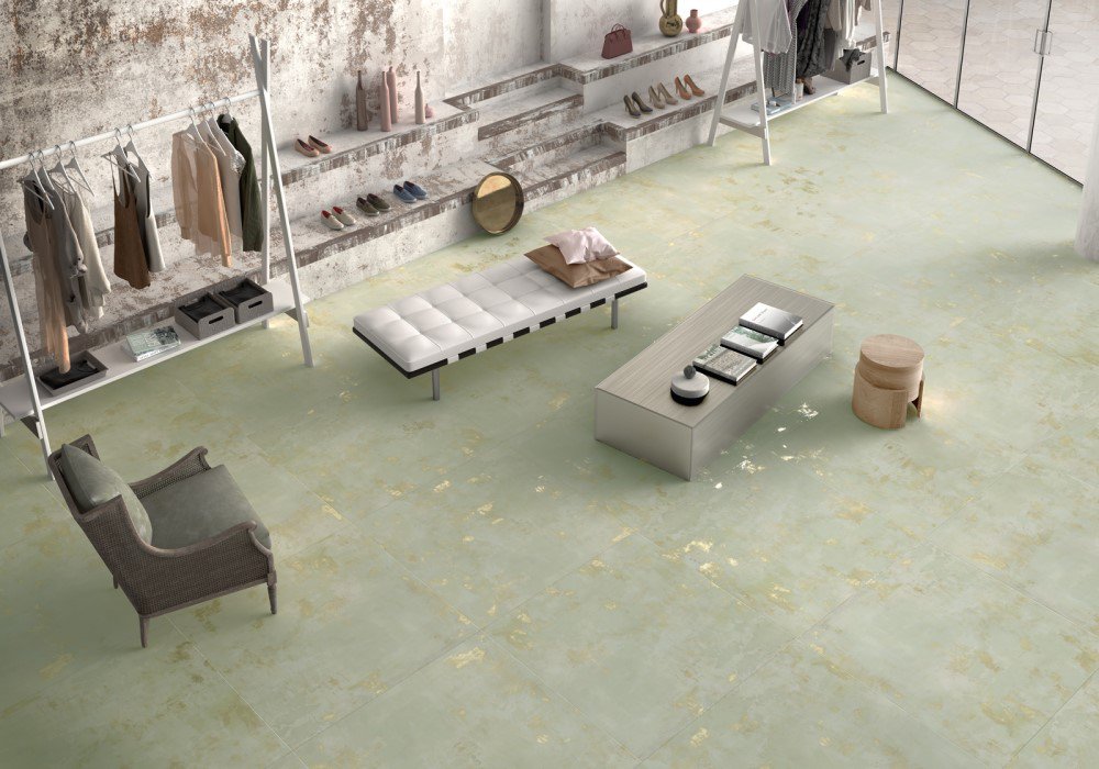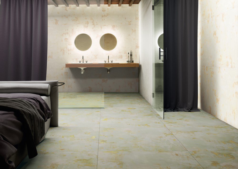 Stone slab effect with subtle gold leafing. Umore is a delicate and refined take on the material, heightening sophisticated stone with a wash of gold for an elegant accompaniment to your space.