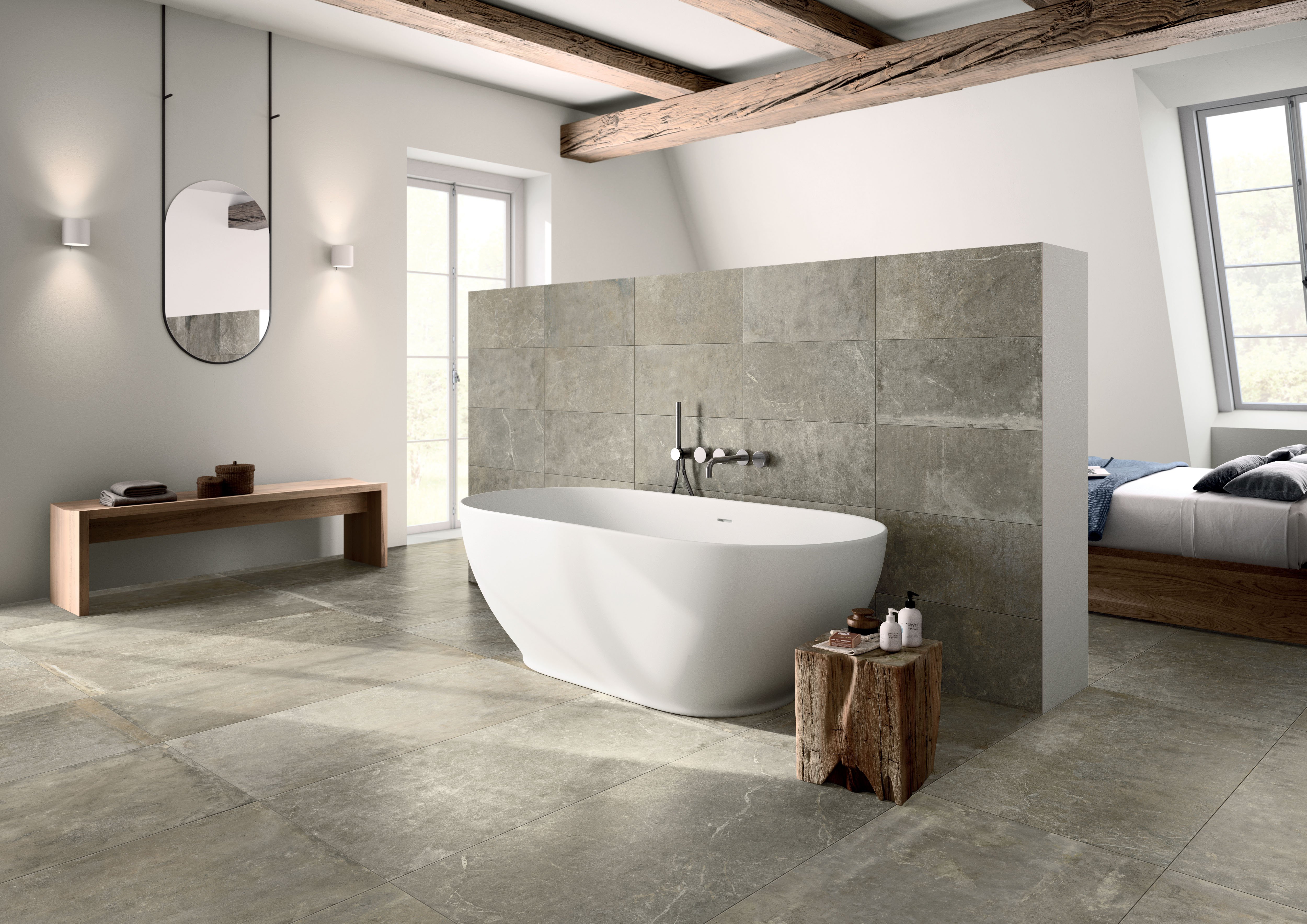 Stone effect surfaces, Pietra features chromatic modulation recreating the authentic variations of the natural material.  Available in a large variety of sizes and netural tones.